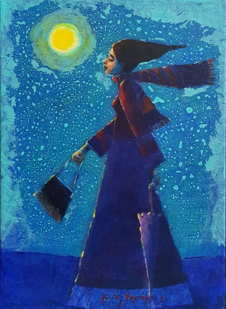 Kadir Öztoprak is a painter who lives and works in Ankara, Turkey. He has a BA in Fine Arts Faculty at Gazi University, painting department. He works also as a Museum Designer at the Ministry of Culture. Kadir Öztoprak is represented by the Soyut Gallery in Ankara and has participated in a number of exhibitions and fairs in Ankara, İstanbul, and İzmir. His paintings have a glimpse of Chagall's early paintings representing dreamy and serene moments.
